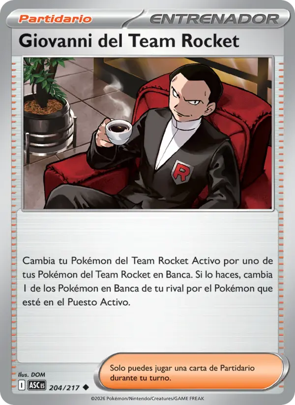Cambia tu Pokémon del Team Rocket Activo por uno de tus Pokémon del Team Rocket en Banca. Si lo haces, cambia 1 de los Pokémon en Banca de tu rival por el Pokémon que esté en el Puesto Activo.
